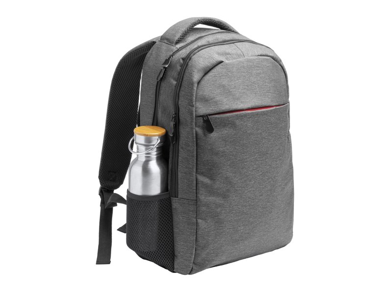 Πολυεστερικό σακίδιο laptop με τελείωμα heather. Ιμάντες ώμου, πλάτης και χερούλια με επένδυση. Δύο μπροστινά διαμερίσματα και πλαϊνές τσέπες.